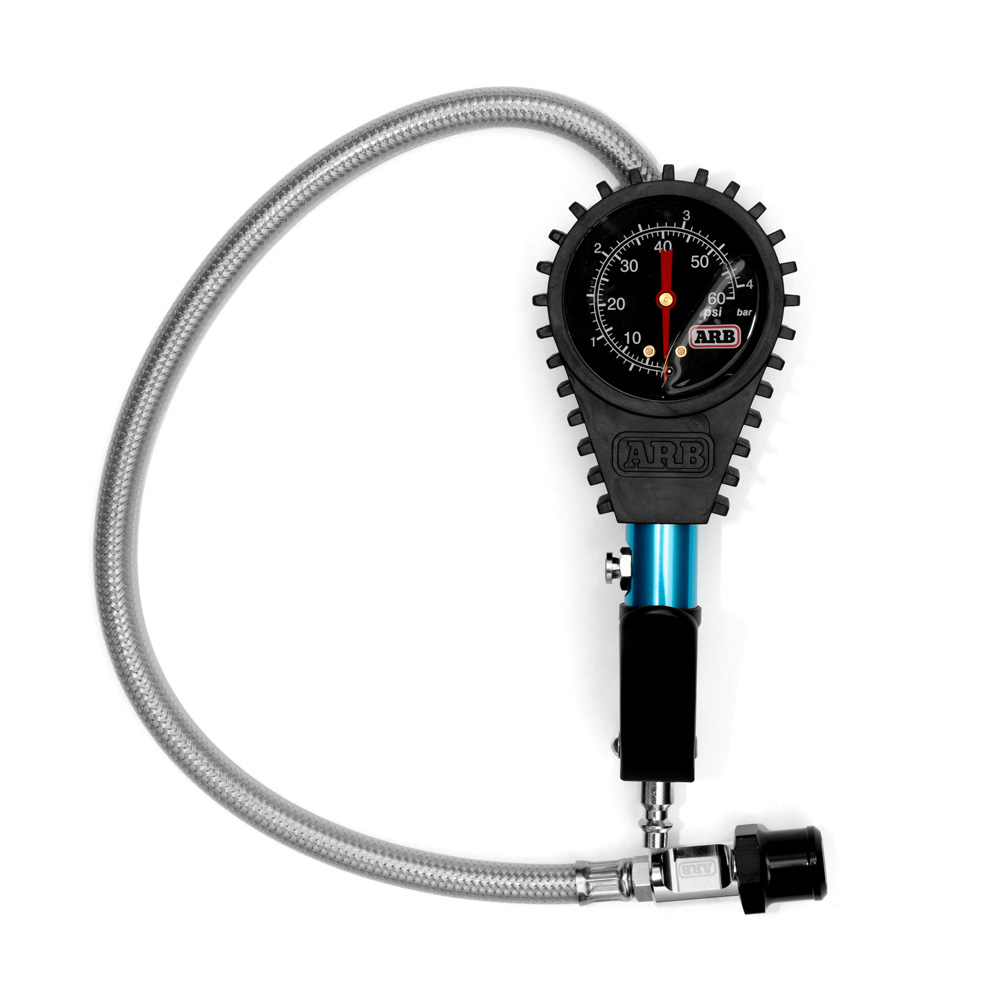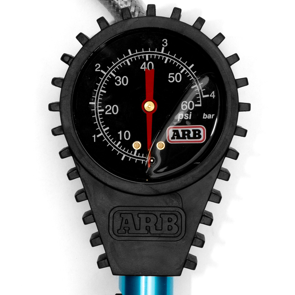 Dekktrykkmåler fra ARB designet for rask og nøyaktig luftfylling med en in-line lettlest måler i PSI (0 til 60 psi) eller BAR (0 til 4 bar)